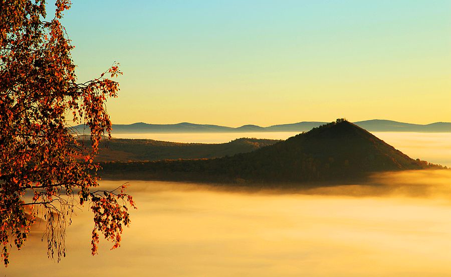 【拍摄内容】早起驱车前往四方山景区,拍摄日出林海云雾(视天气条件),四方山秋季风光、白桦林、天池奇观、黄菠萝树。这里是火山喷发后留下的火山口,经年便形成了山顶天池,沿途经农作区,森林地带,风光秀美。下午由领队老师前往汇合口,拍摄汇合口景观、大峡谷、兴安岭五花山等。