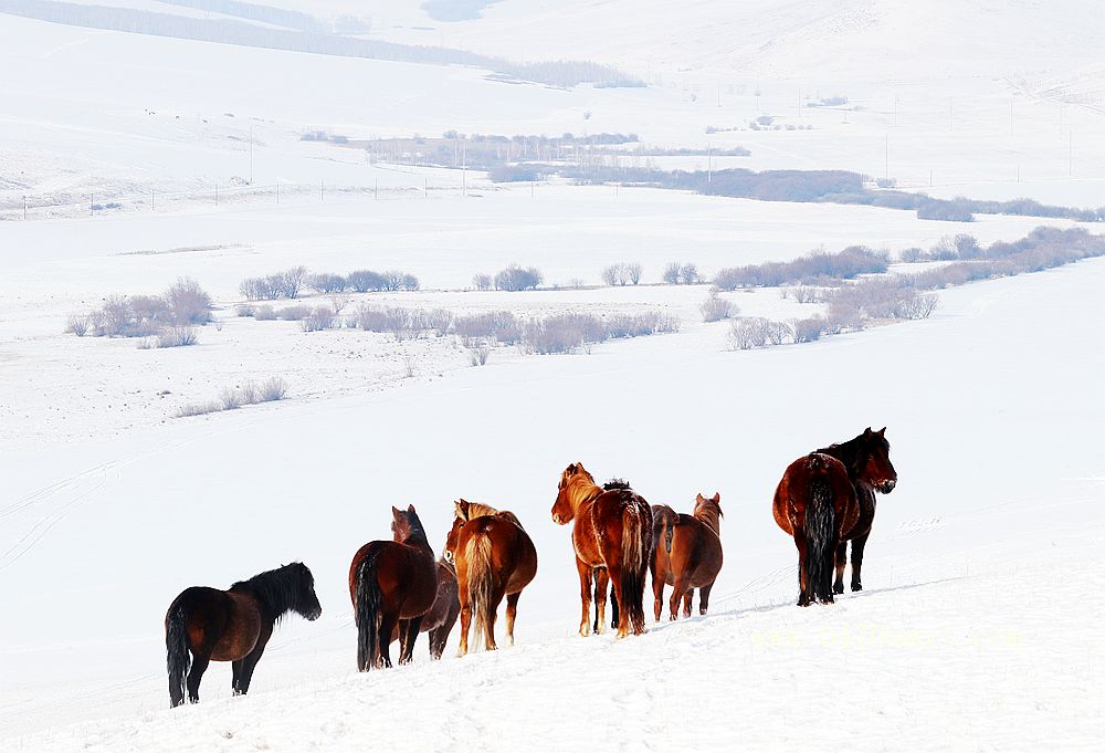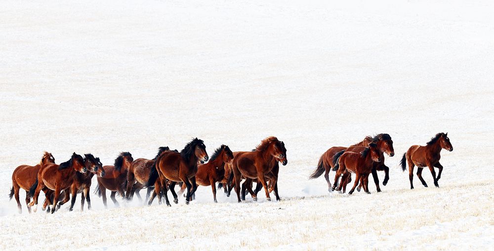 【亮点之一】 由专业领队带领团员乘越野车激情穿越冬季大雪原。拍摄雪原马群,羊群,驼群等。